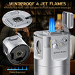 8-in-1 Desktop Cigar 4 Jet Flame Butane Torch Lighter w Straight - V-Cut - Punch, 3 Ashtrays, 3 Draw Tools, 2 Stands