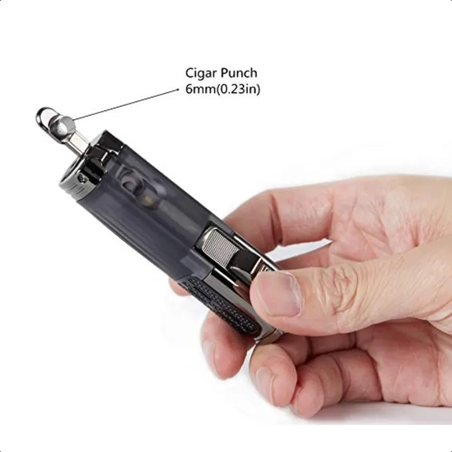 Premium Triple Cigar Torch Lighter with Transparent Fuel Tank (2-Pack) & cigar punch.