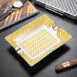 remium Ceramic Cigar Ashtray with Elegant Gold Detailing and Double-Cradle Design for Two Cigars