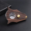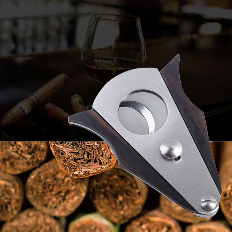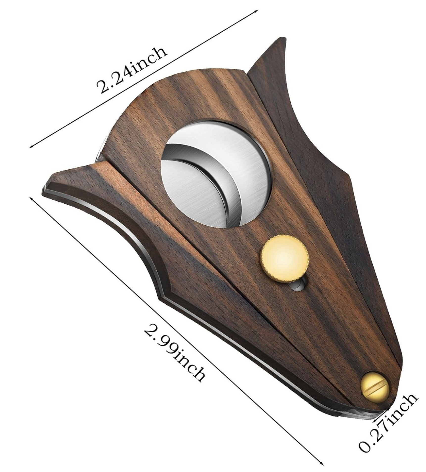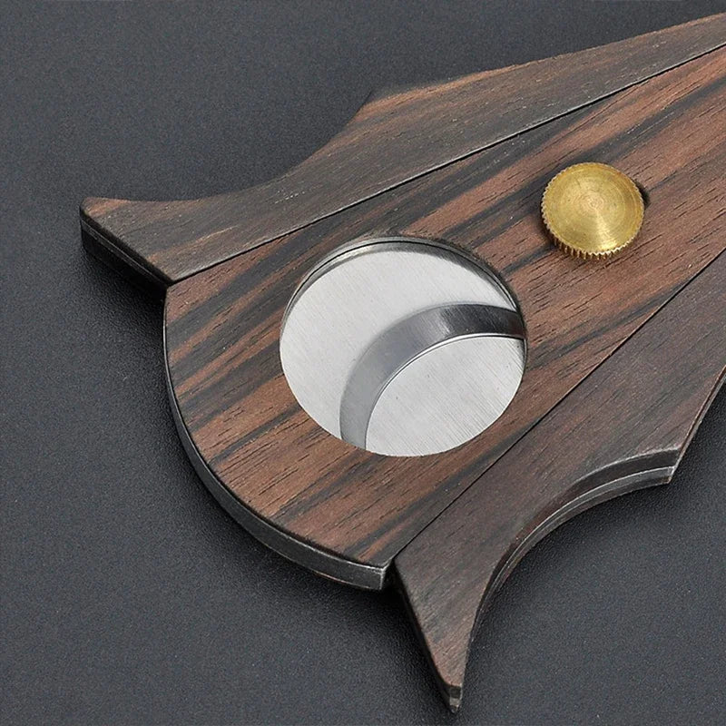 Double Guillotine Wood Cigar Cutter made with stainless steel and blade lock.