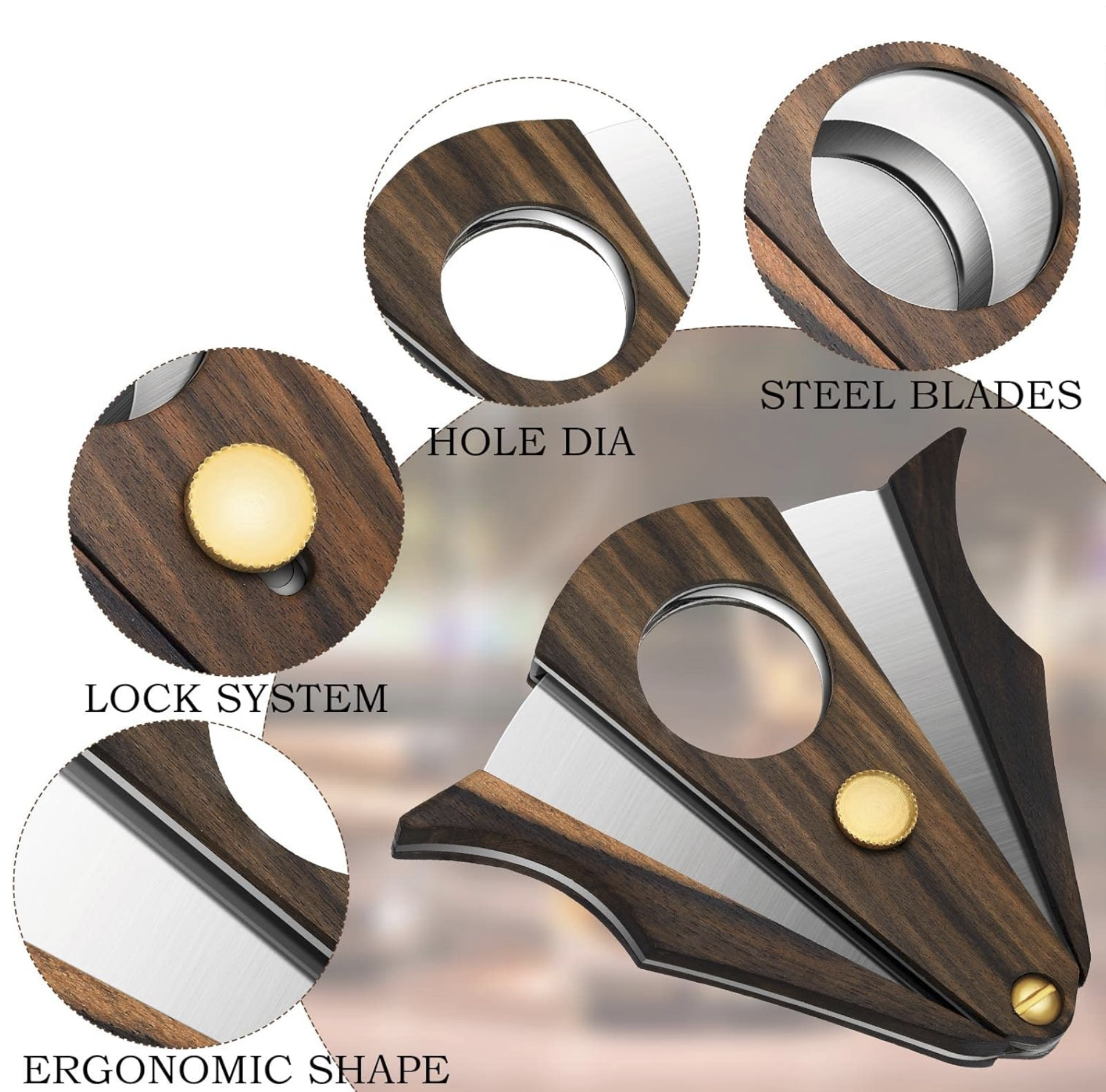 Achieve the perfect cut with our premium wood and brass cigar cutter. Designed for precision and durability, its sharp blades deliver a clean, crisp cut, enhancing your cigar's flavor and draw.