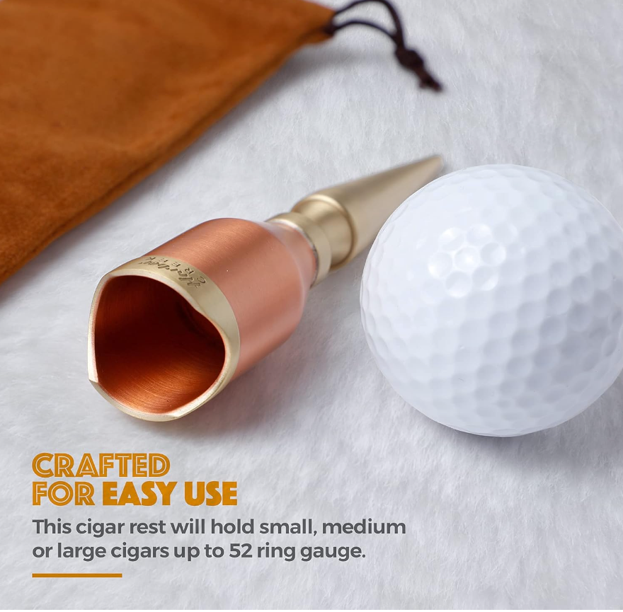 - CRAFTED TO IMPRESS: Distinctive workmanship in every inch – that’s what our golf cigar holders for men are all about. Unlike other cigar stands made of flimsy plastic, we’ve crafted our tool out of copper and brass - giving it a striking two-tone finish for standout aesthetics.