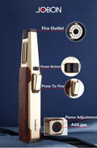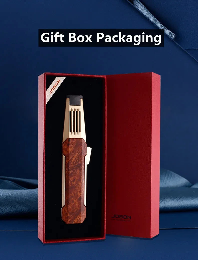 Ignite your cigars with precision using this durable zinc alloy torch lighter. Featuring an adjustable, windproof jet flame (up to 1300°C / 10cm), it ensures a quick, even light every time. Safety is paramount with its secure lock, high-temperature nozzle, and ceramic insulation. Easy to refill and operate with automatic electronic ignition, this versatile lighter is also perfect for making crème brûlée while you enjoy your cigar! Comes in an exquisite gift box.