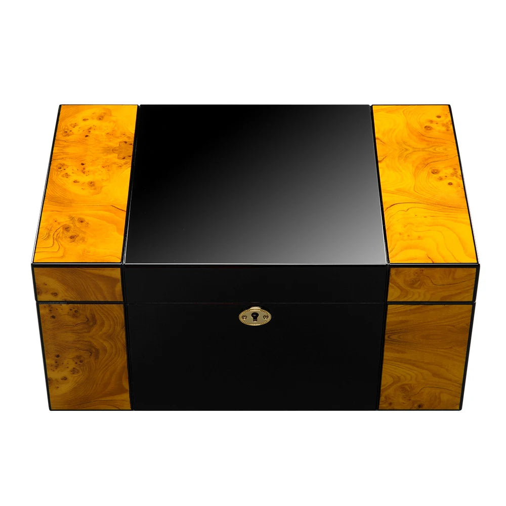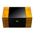 Elevate your cigar storage with this stunning desktop humidor, meticulously crafted for aficionados. Impeccably lined with premium kiln-dried Spanish cedar, this humidor boasts advanced Sure Seal technology, ensuring a perfect seal upon closure.