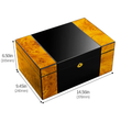 Its scratch-resistant felt-lined bottom adds both elegance and protection to any surface. Unveil your collection effortlessly with the gold-plated hidden quadrant hinges and lock, while the removable Spanish cedar top tray allows for easy access to your prized cigars.