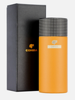 Enhance your cigar travel experience with the Leather Travel Cigar Humidor Tube. The premium leather exterior safeguards a cedar wood interior, ensuring optimal conditions for your cigars. Monitor humidity levels with the included hygrometer and humidifier, and indulge in 5-8 perfectly preserved cigars. Sleek and portable, this humidor is a must-have for any cigar aficionado on-the-go.