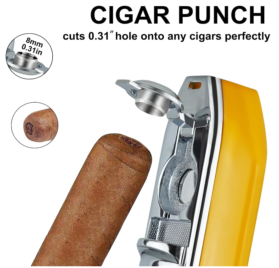 - BUILT IN CIGAR PUNCH: No need to carry around other cigar accessories with our built in cigar punch for a perfect cut and smoke.