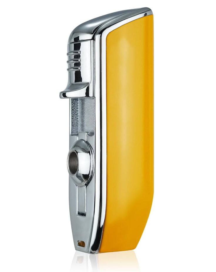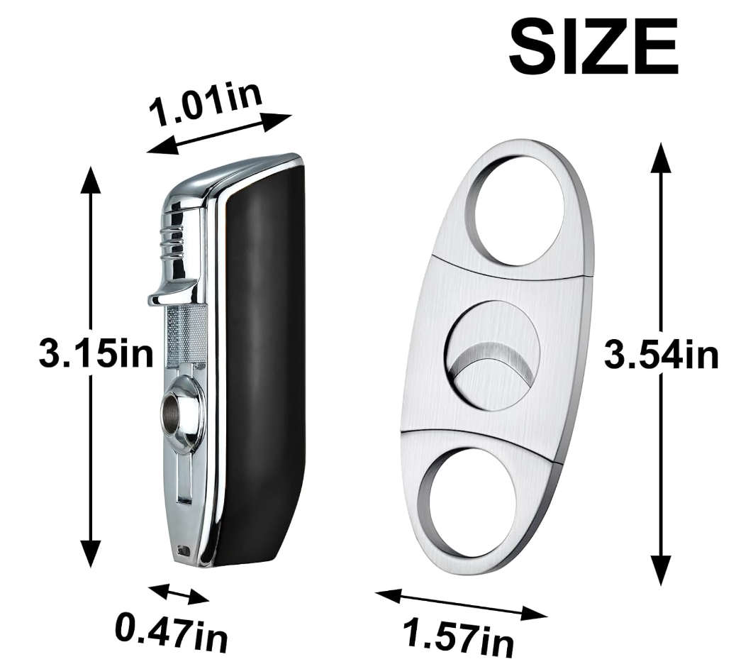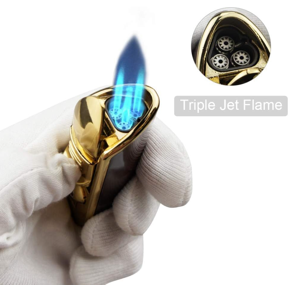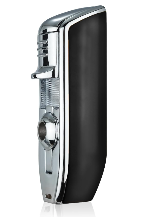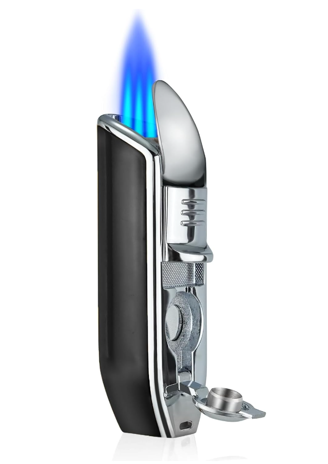 - TORCH CIGAR LIGHTER: Adjustable triple jet flames for an even burn with safety cover cap that automatically opens when lighting.