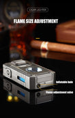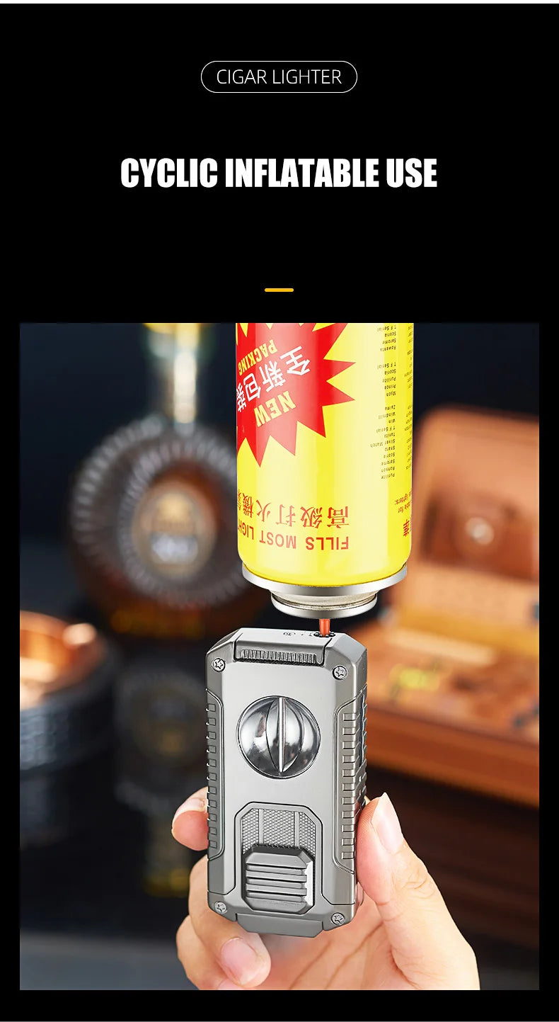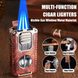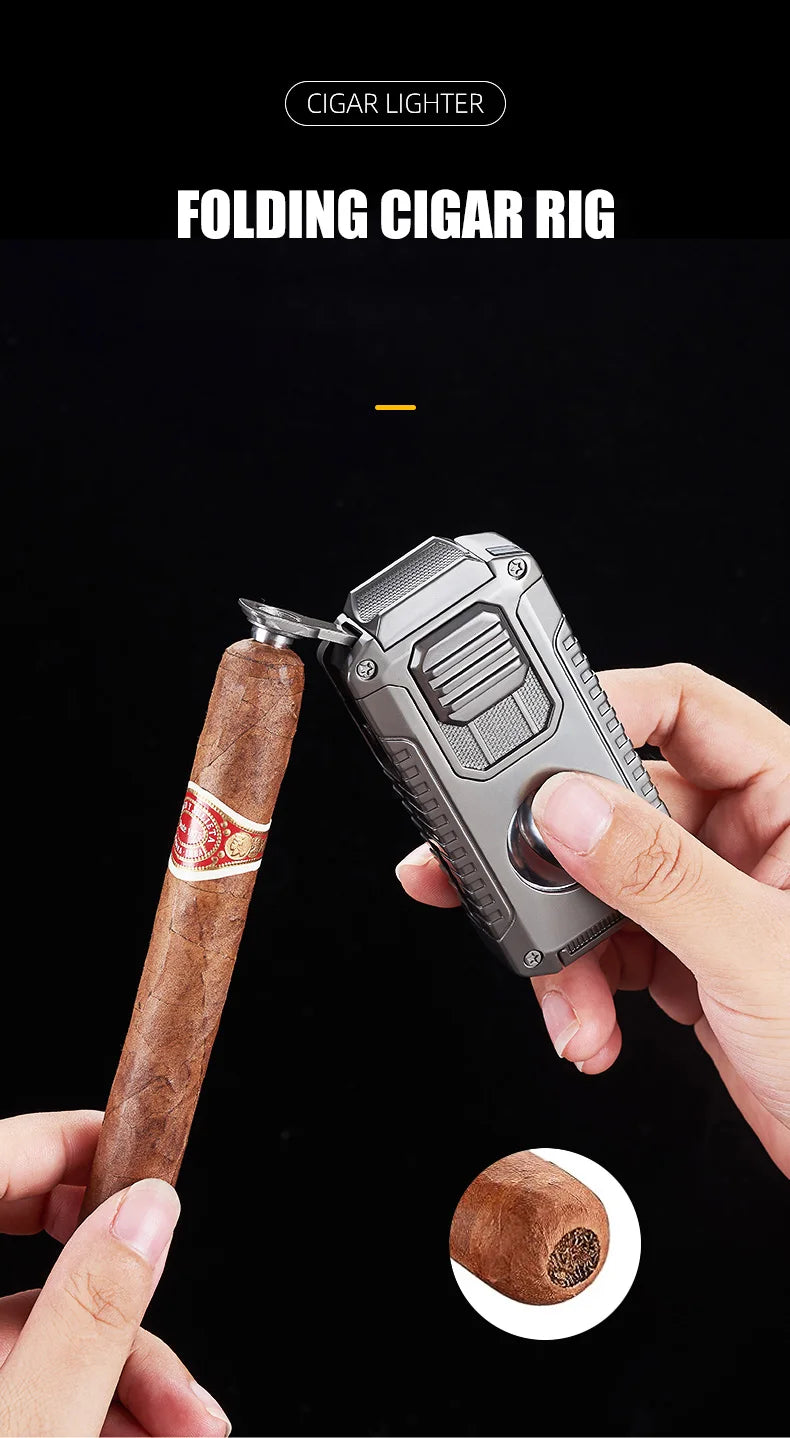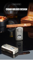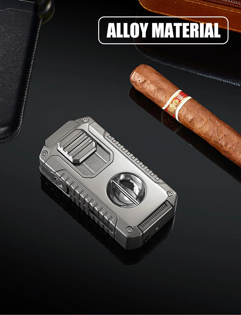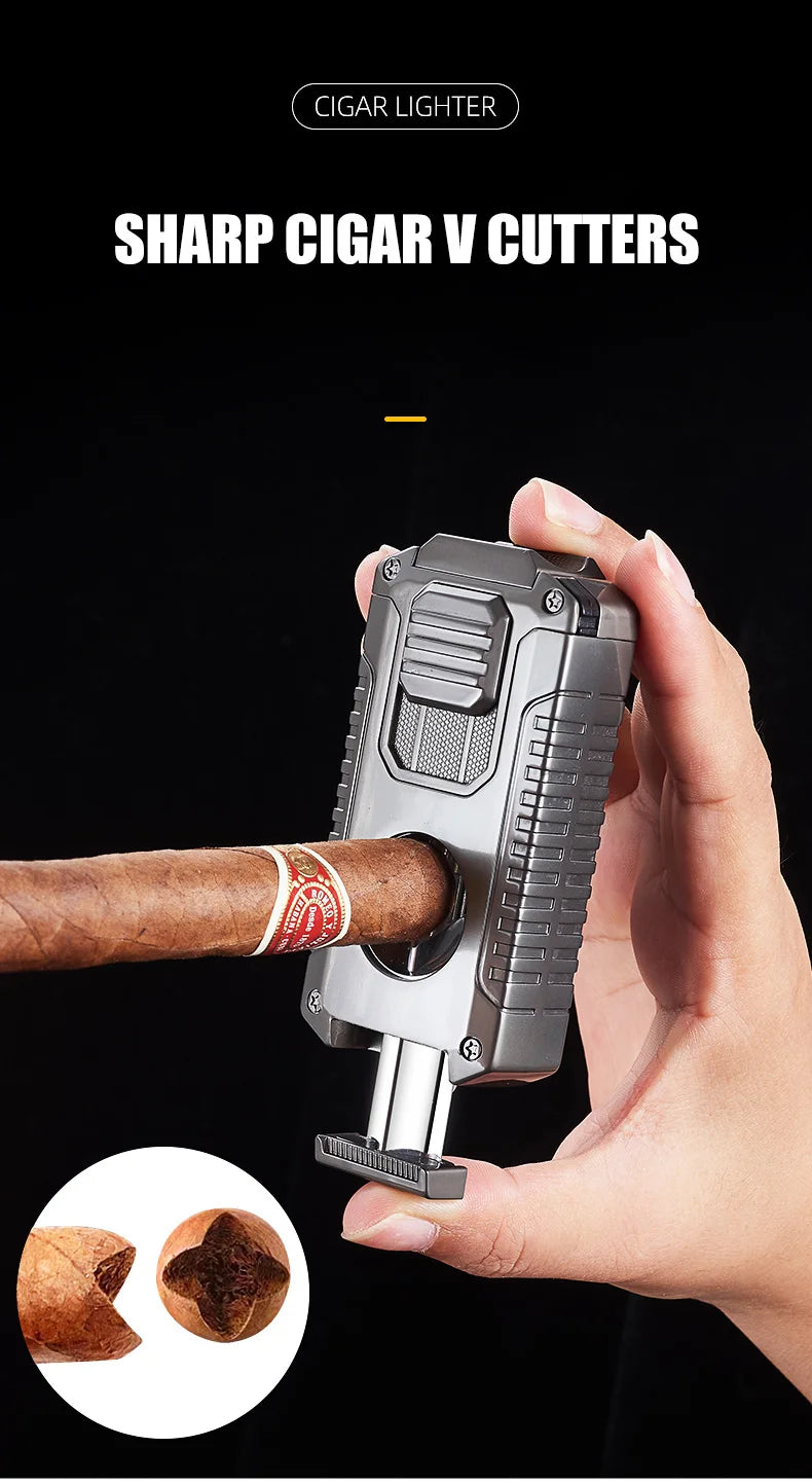 5-in-1 Torch Lighter with V-Cutter, Punch, Holder, and Draw Enhancer Tool, Triple Windproof Flame