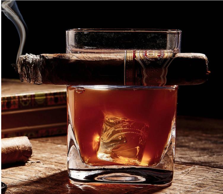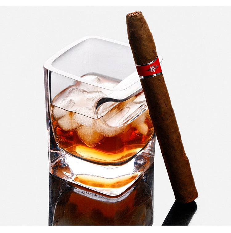 Ultra Crystal Clear Whiskey - Scotch Glass with Cigar Groove holder.